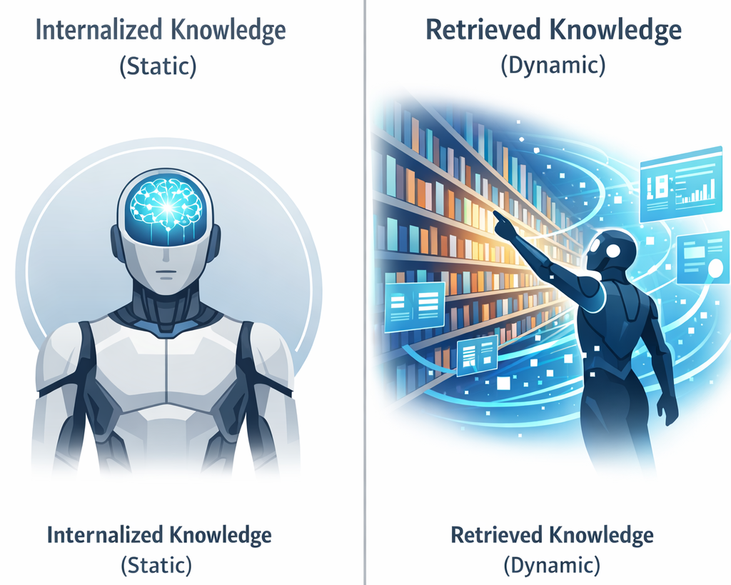 - The Analogy: This is the "Librarian" approach. When a user asks a question, the system searches your live documents, finds the relevant paragraphs, and feeds them to the AI to generate an answer.